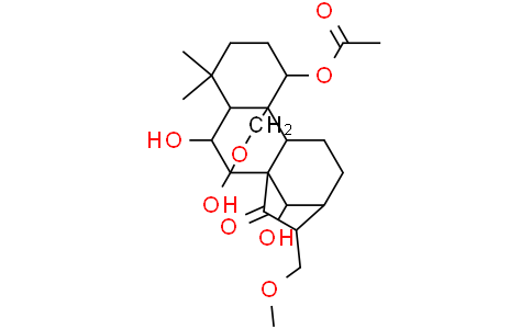 | SMILES: | COCC1C2CCC3C(C2O)(C1=O)C1(O)OCC32C(CCC(C)(C)C2C1O)OC(C)=O |THB:10:9:7.5.6:11.3| |